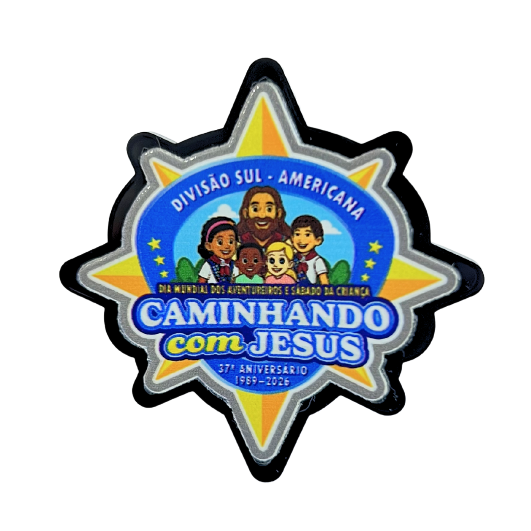 PRENDEDOR - DIA MUNDIA AVT - 37 ANOS 2026 - CAMINHANDO COM JESUS - ACRÍLICO - 1 ANEL